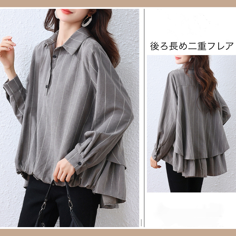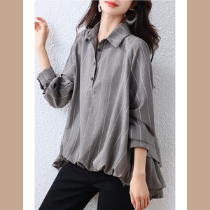 襟付きグレーストライプ七部丈シャツ E00520