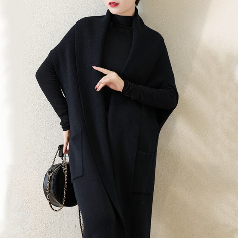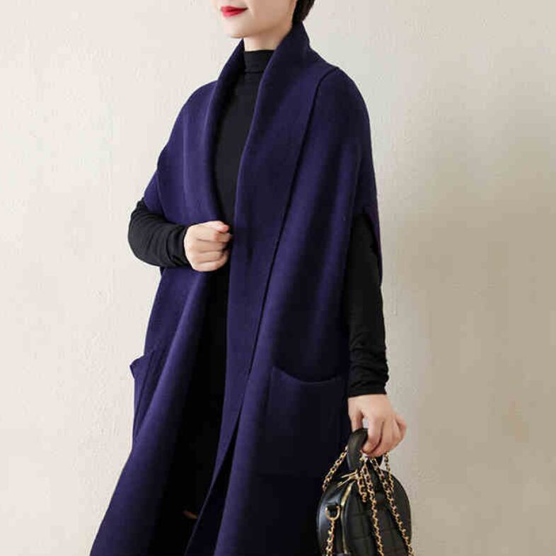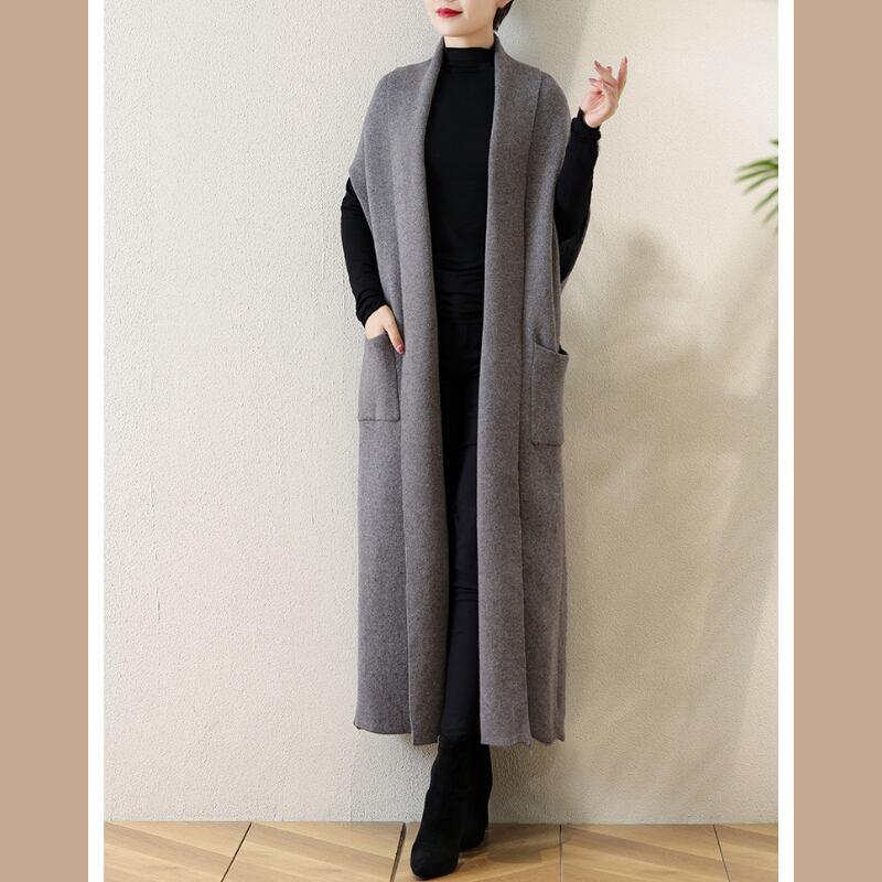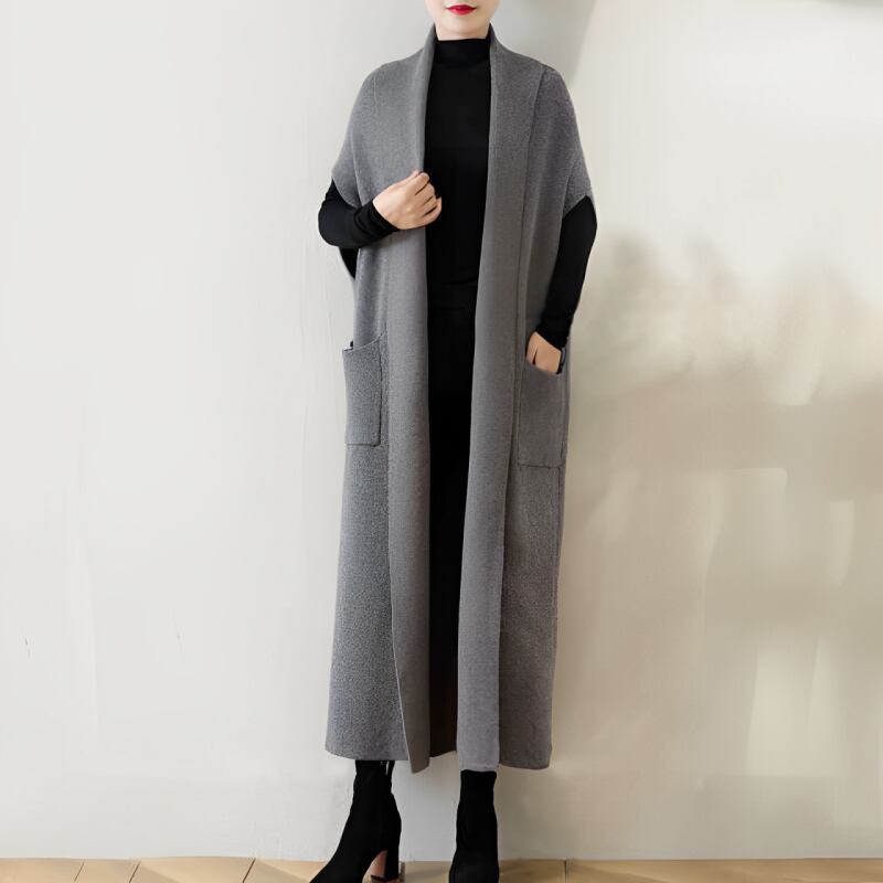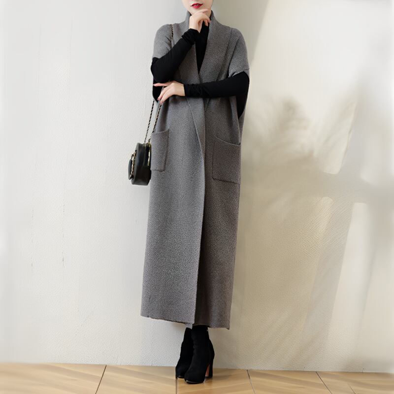 ポケット付きロングニットジレ E00026
