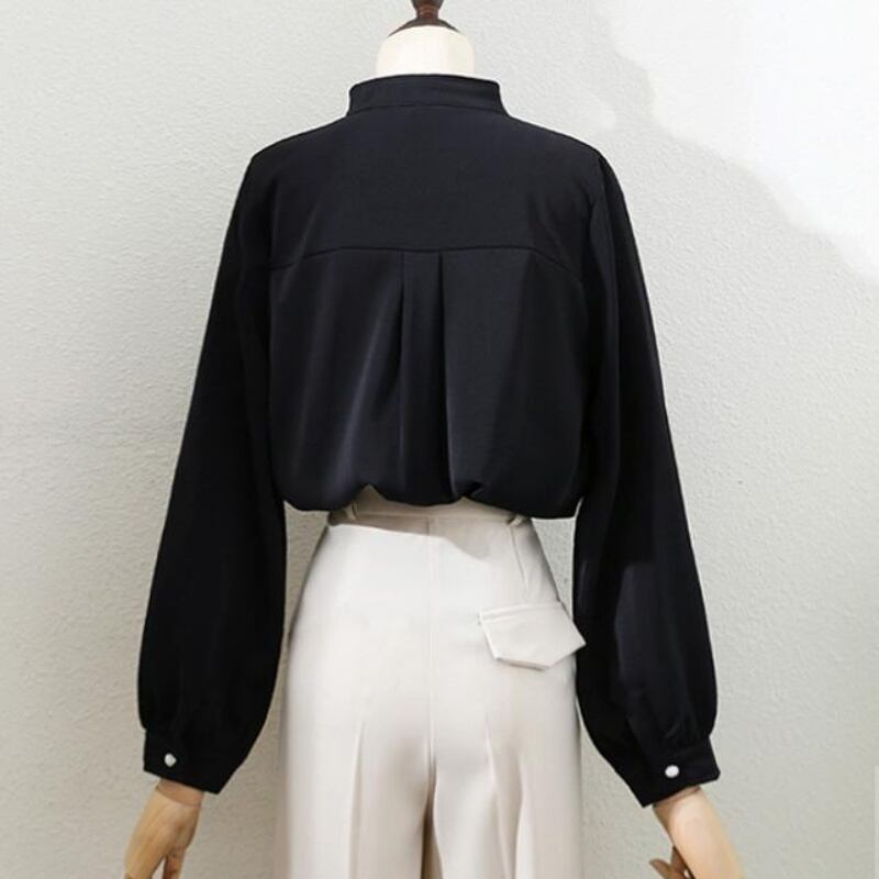 斜めボタンパフスリーブシャツ E00036