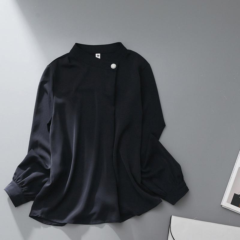 首元にアクセントになるボタンが斜めに付いているオシャレなシャツです
