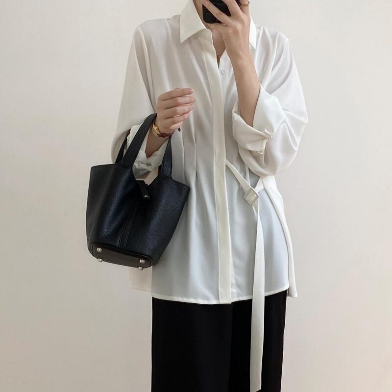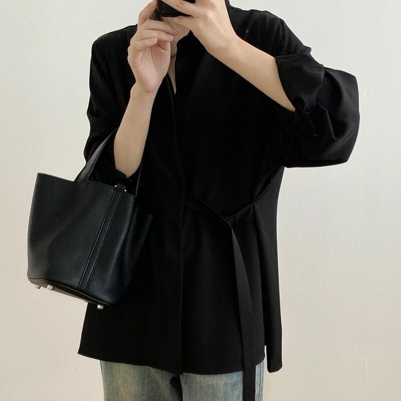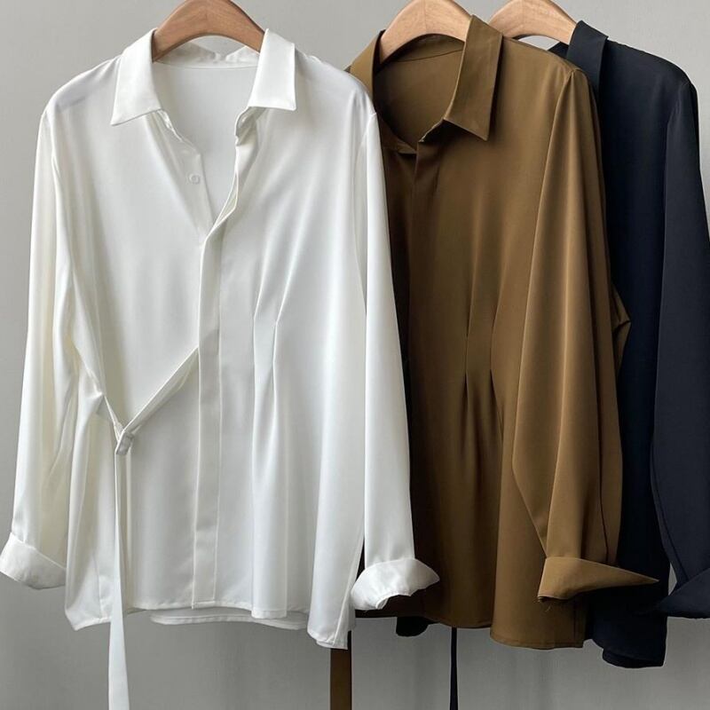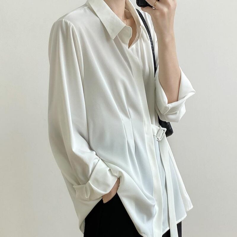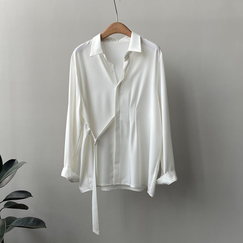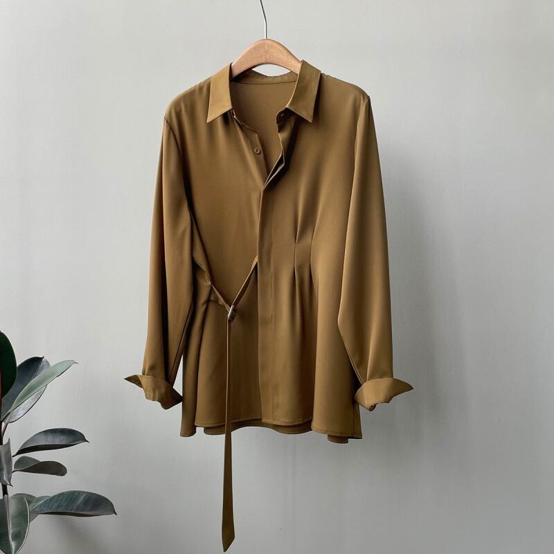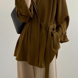 ウエスト片側に紐ベルトがついたおしゃれなシャツです