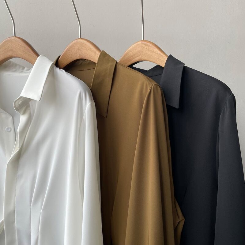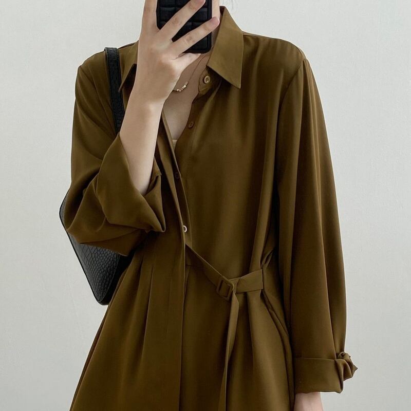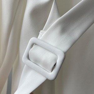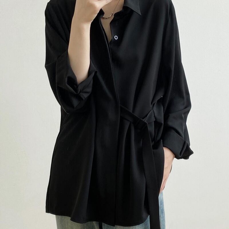 シャツはボタンで止めますが、ベルト紐を垂らしてルーズに着ていただけます