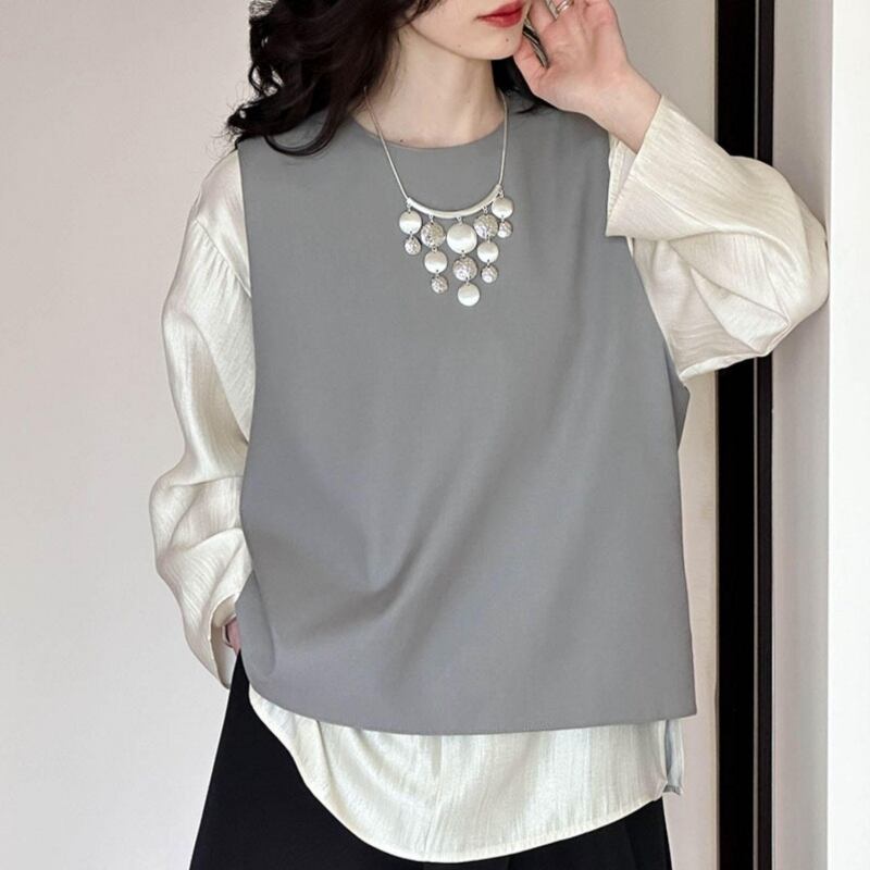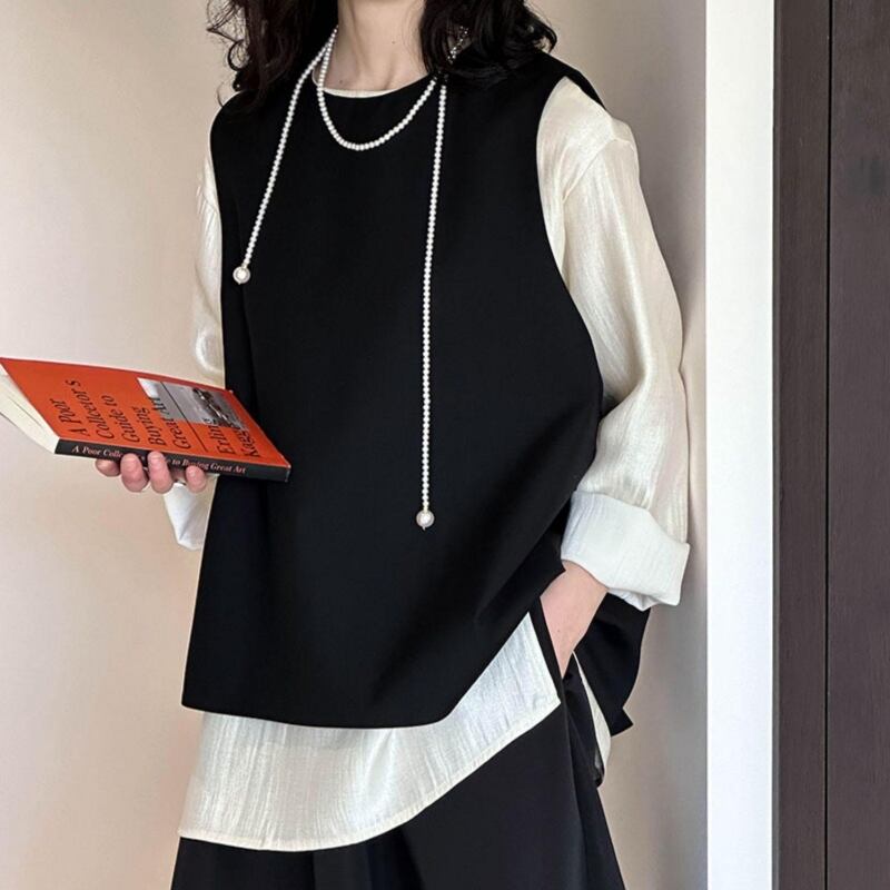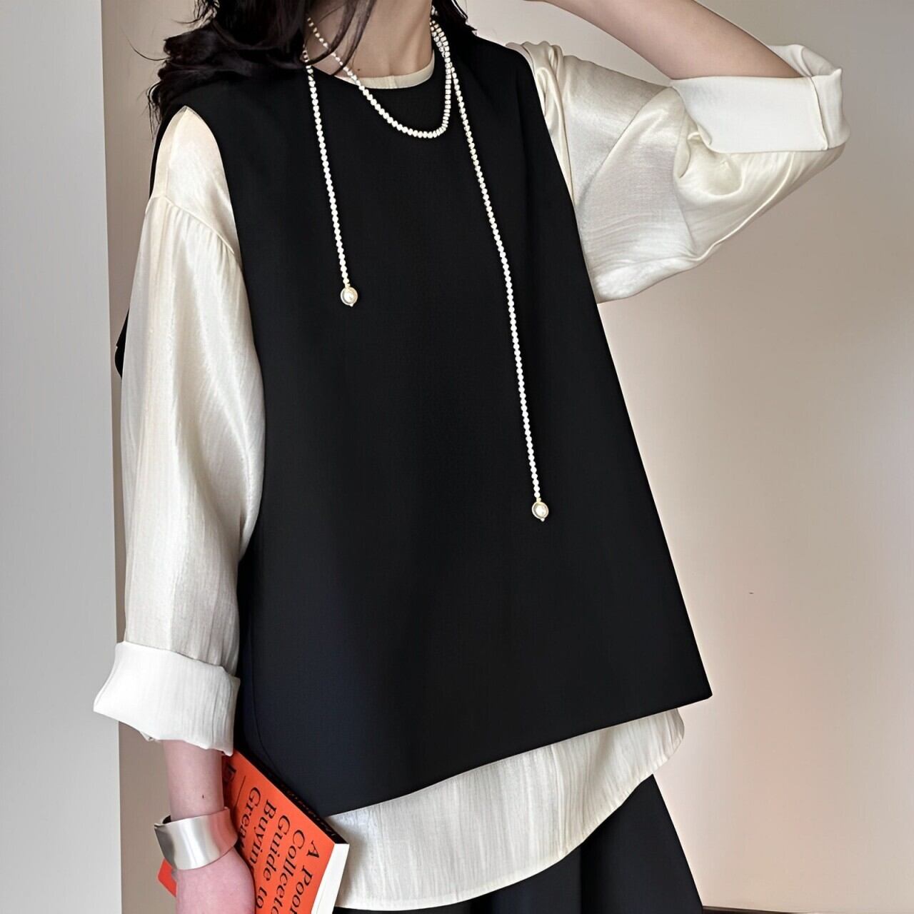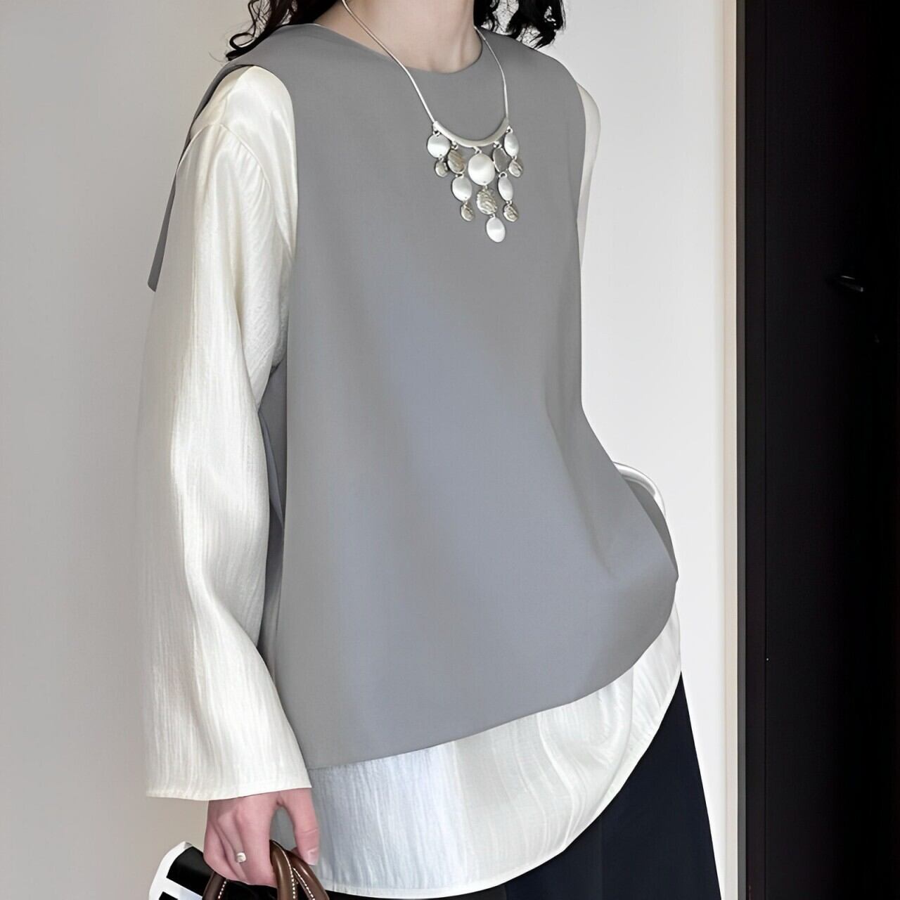 バックスリットラウンドネックベスト E00183