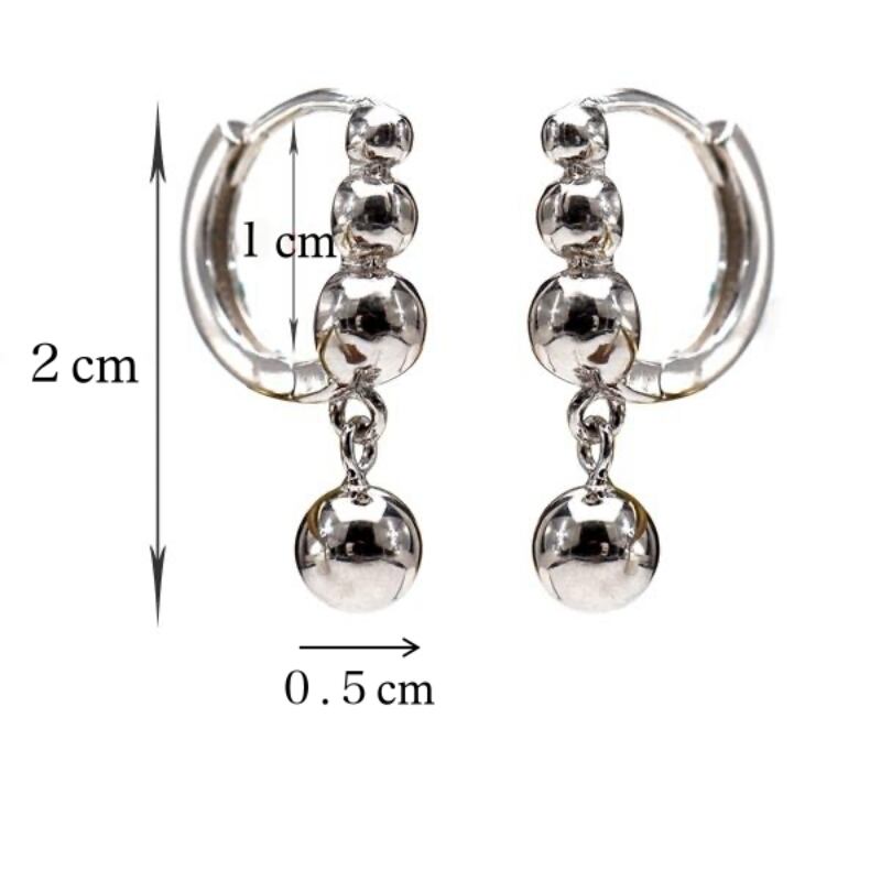 半円にボールが3つ繋がってその下に揺れるボールがついたピアスです