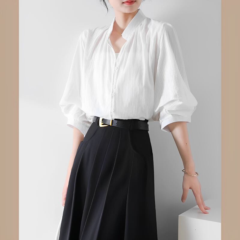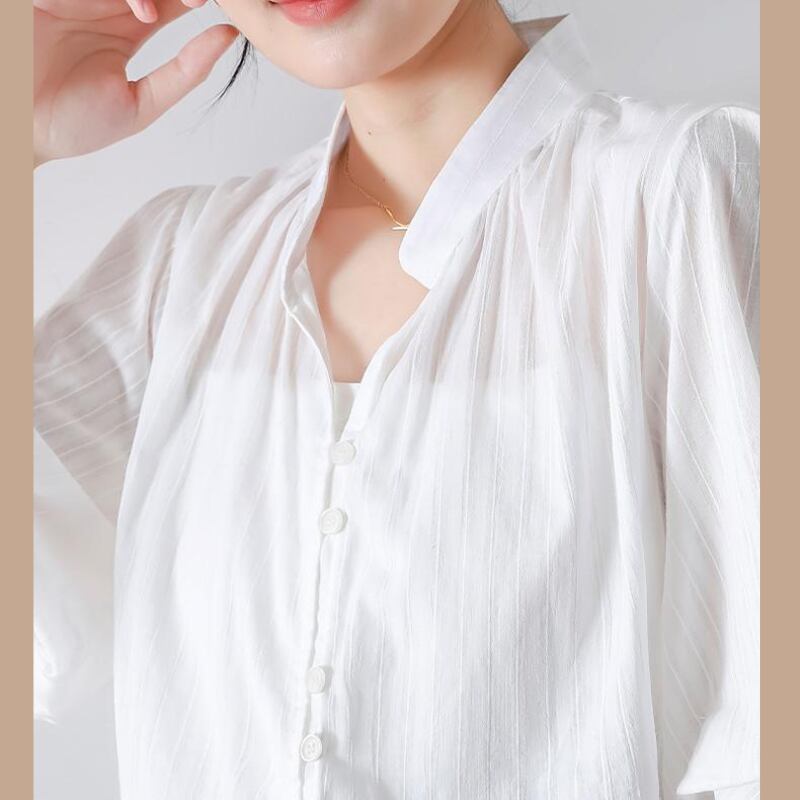 白地に白のストライプ柄でおしゃれにきまる1枚ですね