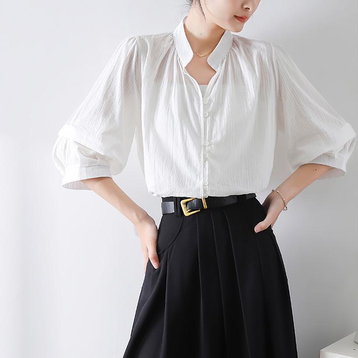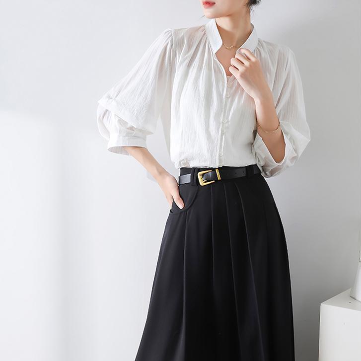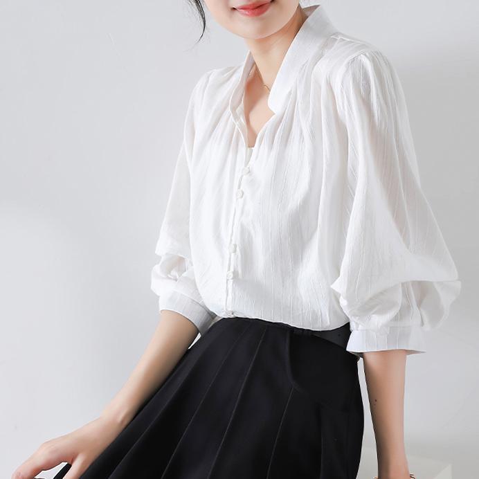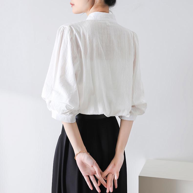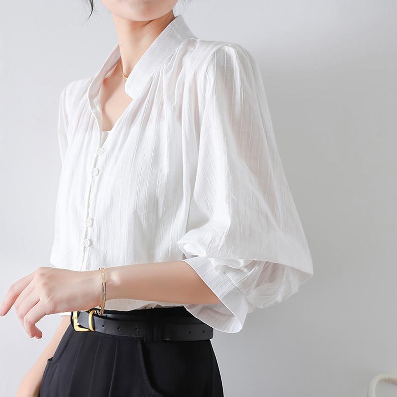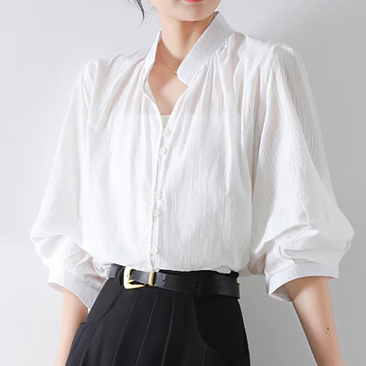 スキッパーカラーストライプ7分丈ブラウス E00219
