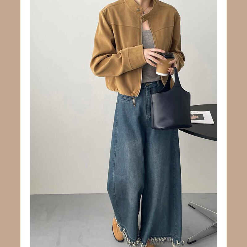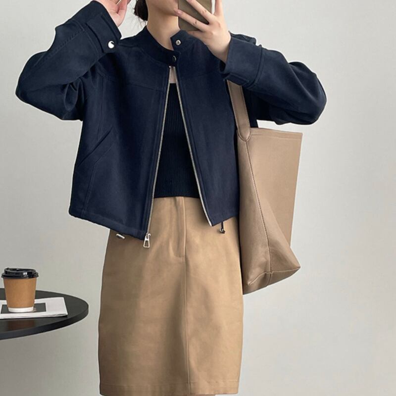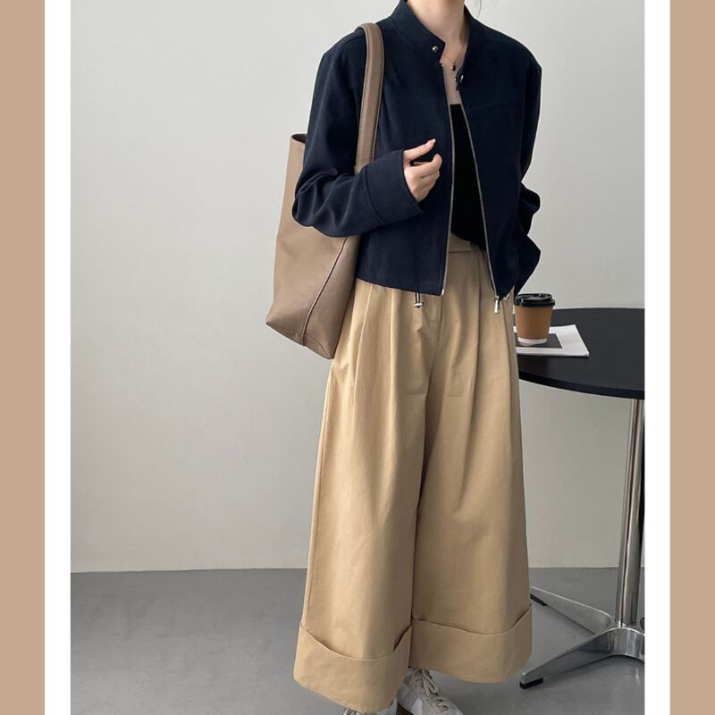 少し短めなのでボトムスはワンドパンツやスカートなどに合わせやすそうです