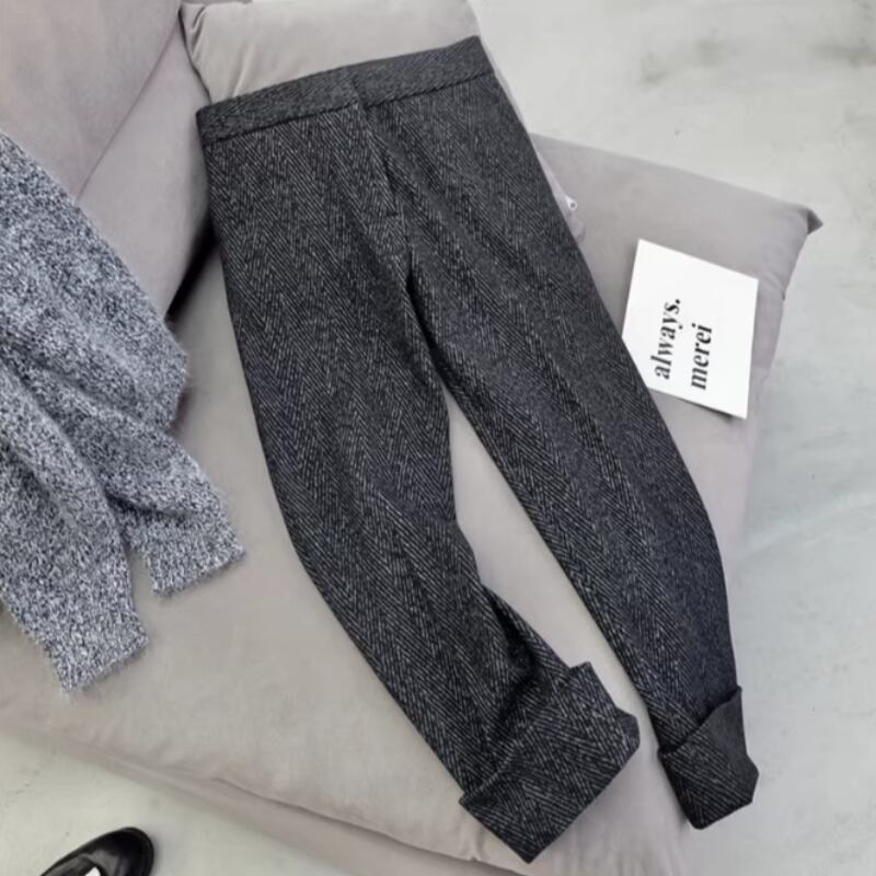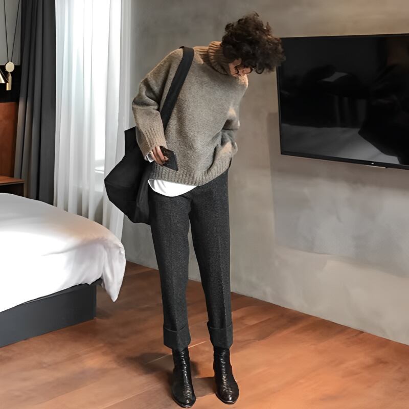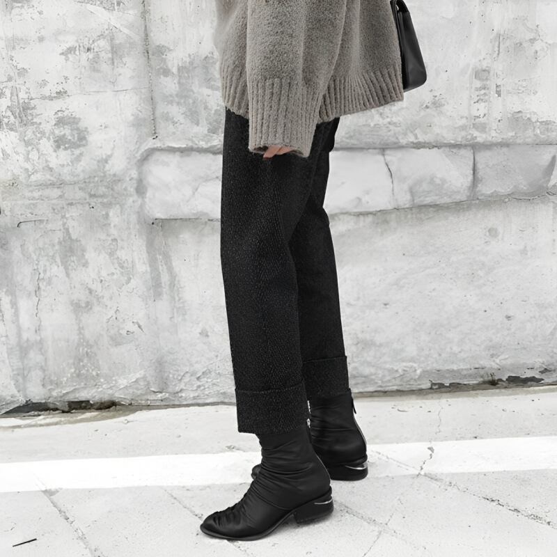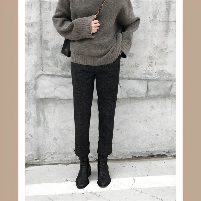 裾が折り返してあるゆったりストレートパンツです