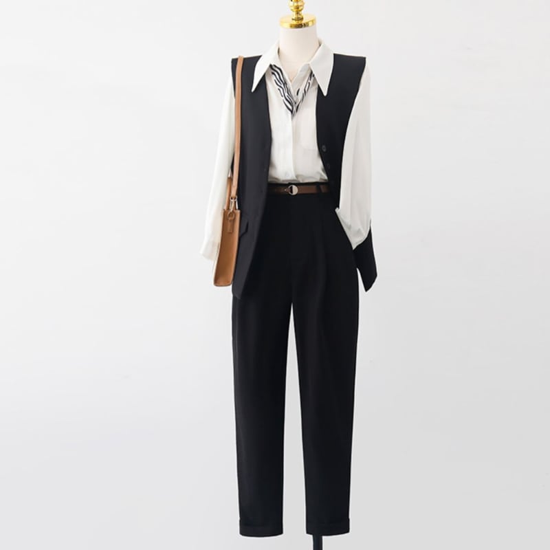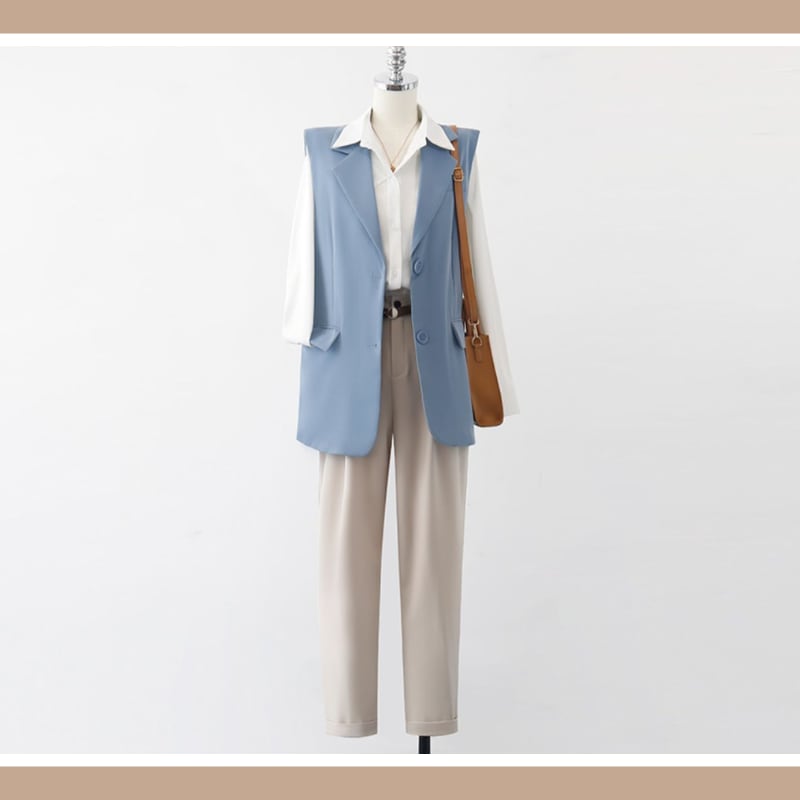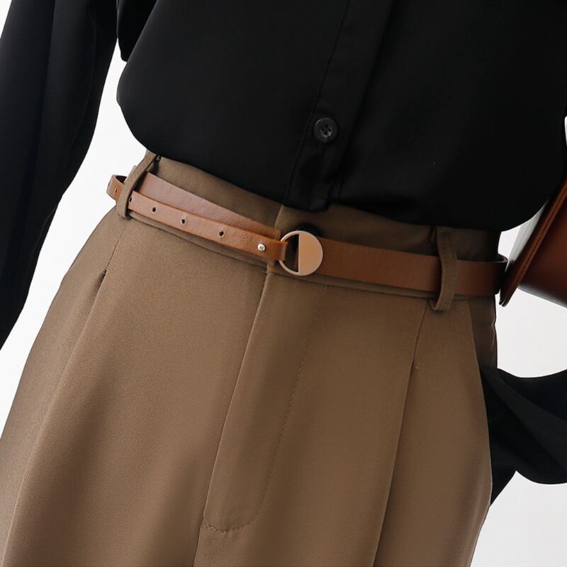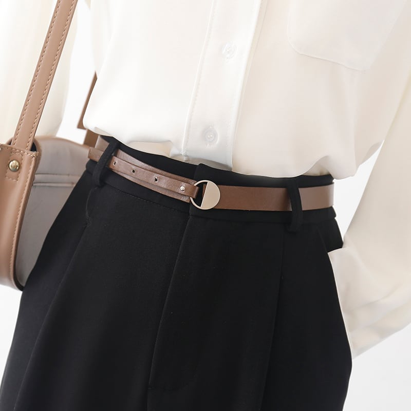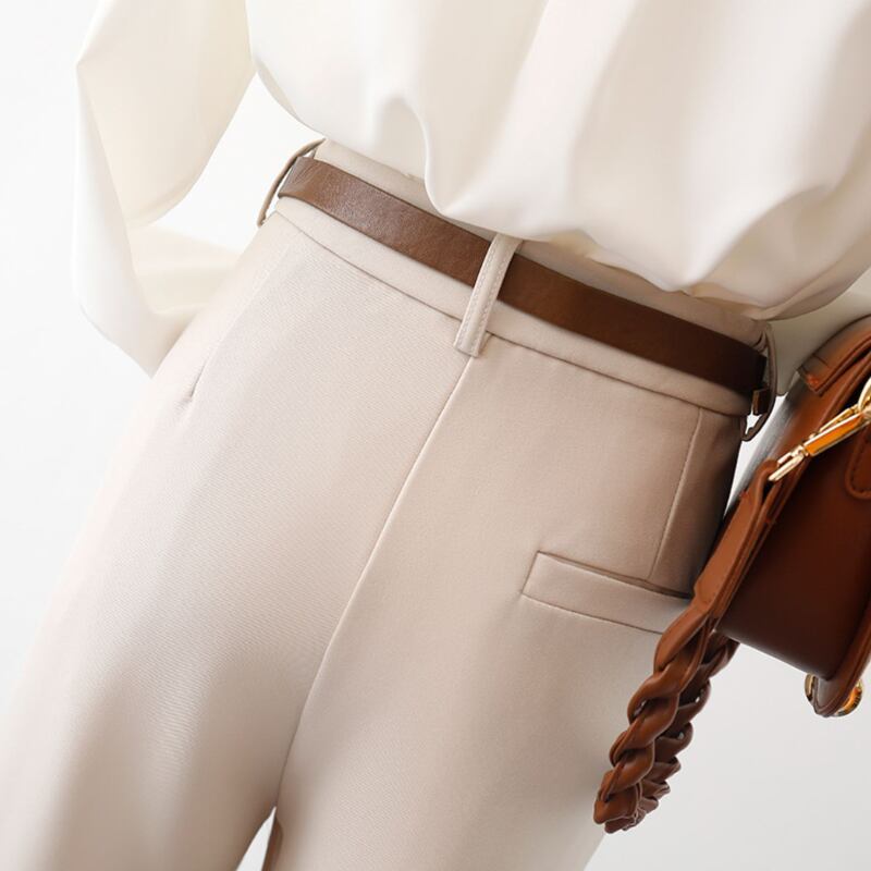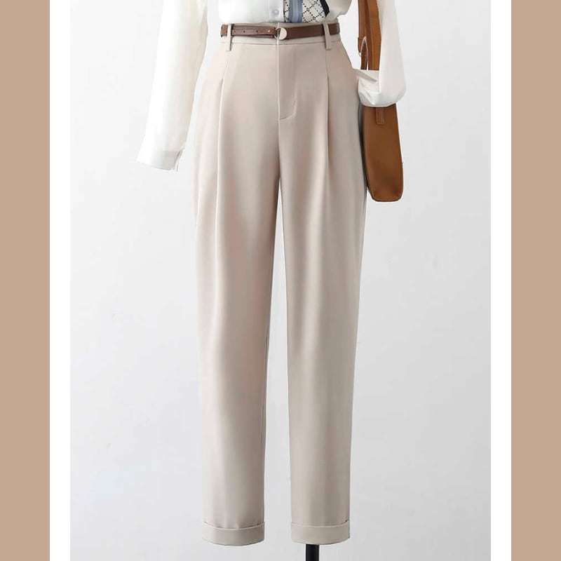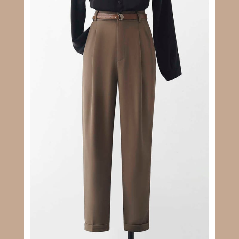 ベルト付きタックダブル裾ストレートパンツ E00383