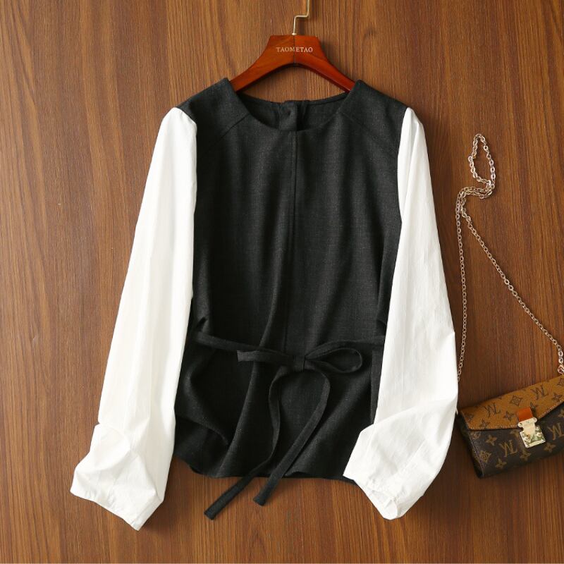 フェイクツーピースウエスト紐ベルトシャツ E00389