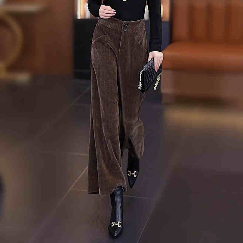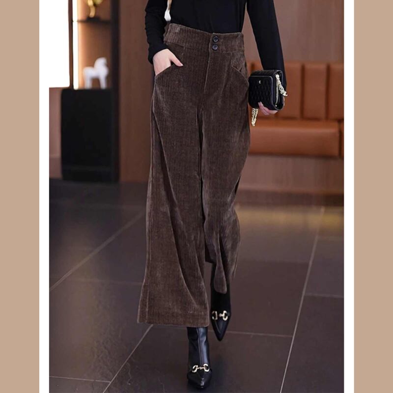 ウエスト2つボタンのウエスト後ろゴムのコーデュロイのワイドパンツです