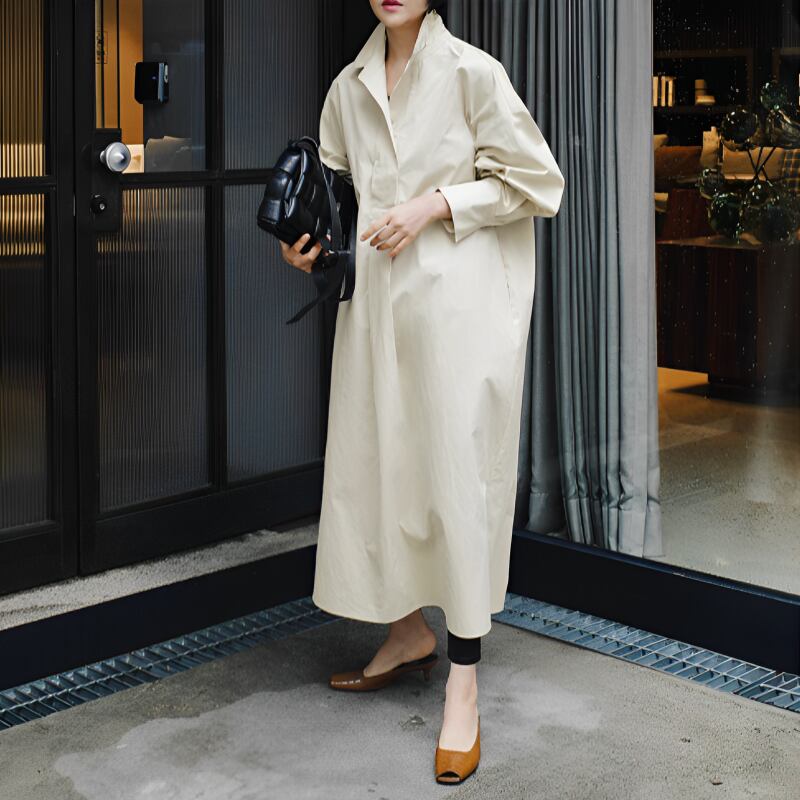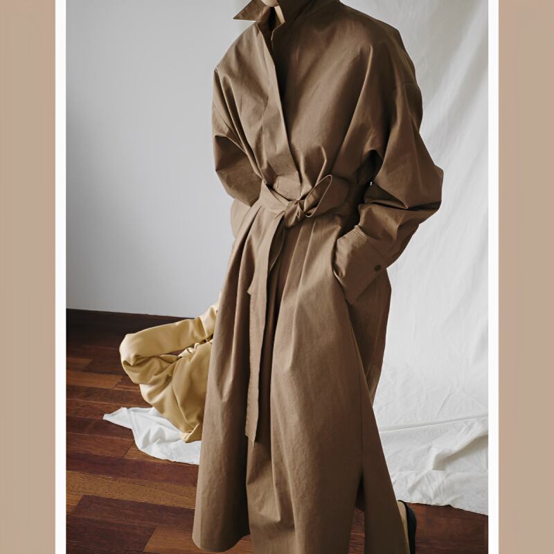紐ベルトで締めても、ゆったり着ても違う雰囲気を楽しめますね