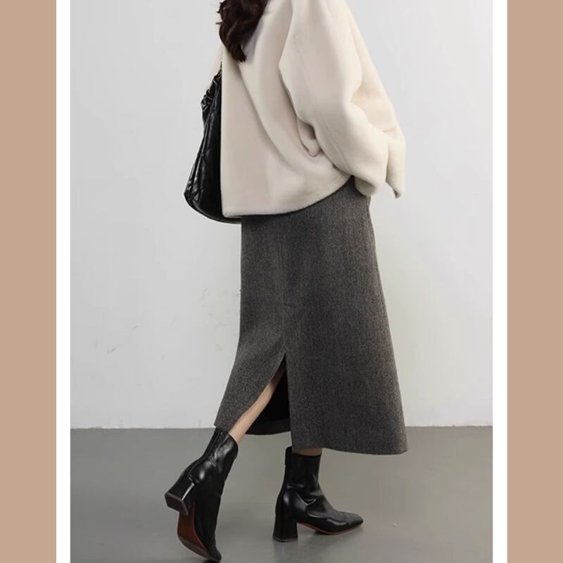 ヘリンボーンミモレ丈Aラインスカート E00416