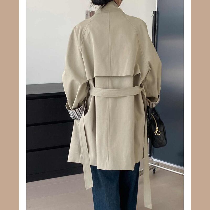 襟が素敵な短めのトレンチコートです