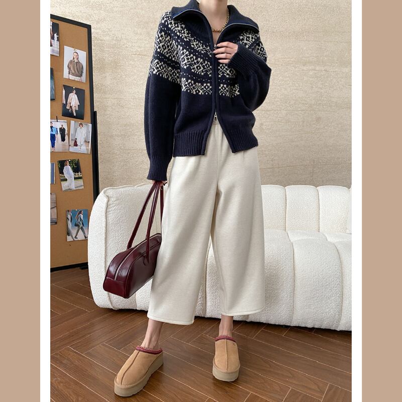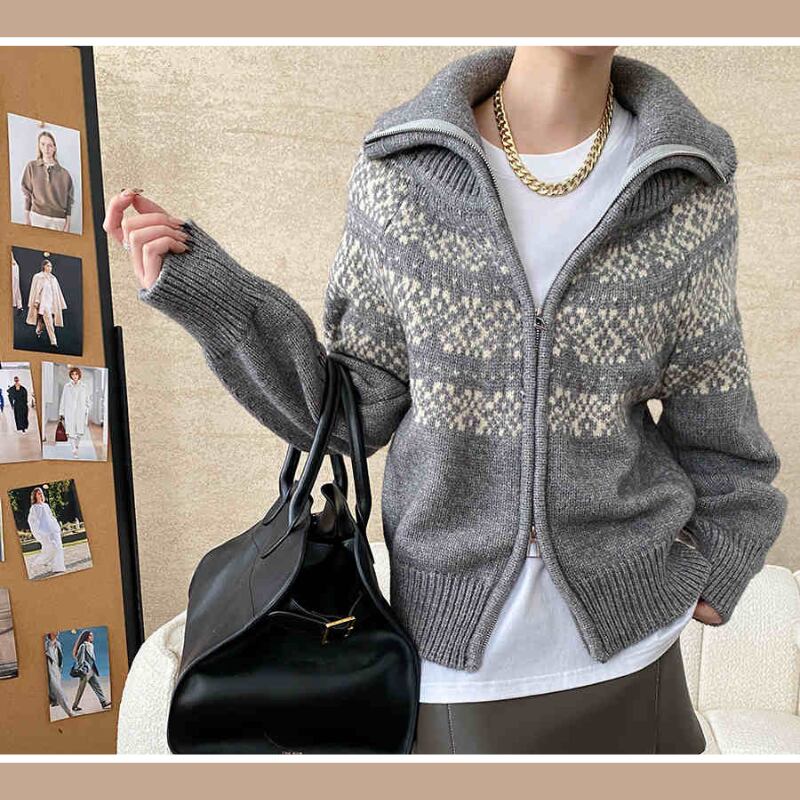 北欧風柄ジッパーセーター E00448