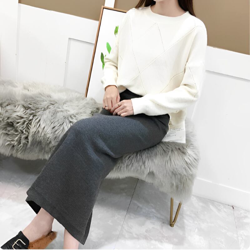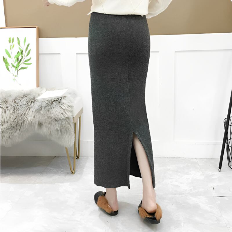 後ろにスリットの入った裏地ベルベットの暖かそうなスカートです